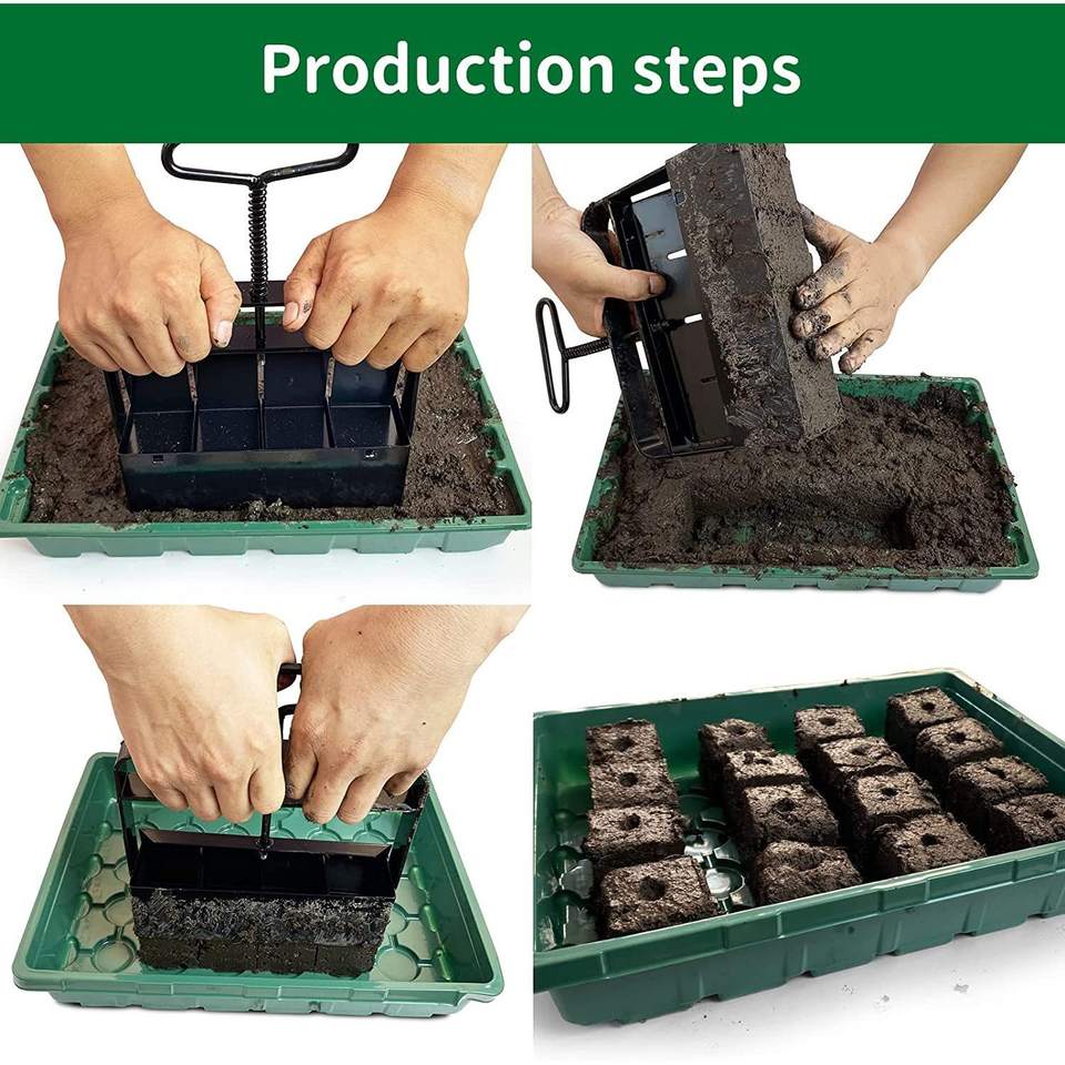 Bloqueador de suelo manual, fabricante de bloques de suelo de 4 celdas, herramienta de jardín de plástico negro para siembra y plantación
