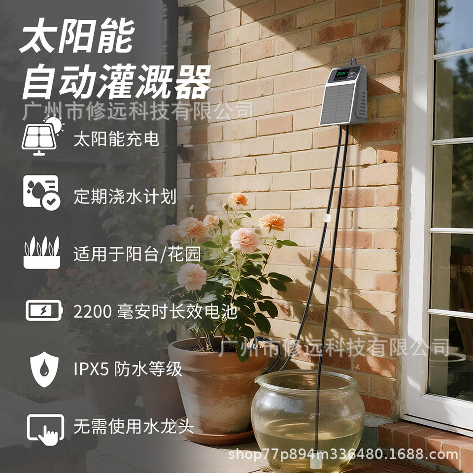 Temporizador de Riego Automático Solar, Sistema de Riego Digital para Jardín y Césped con Panel Solar de 10000mAh, PVC, Conexión Rápida