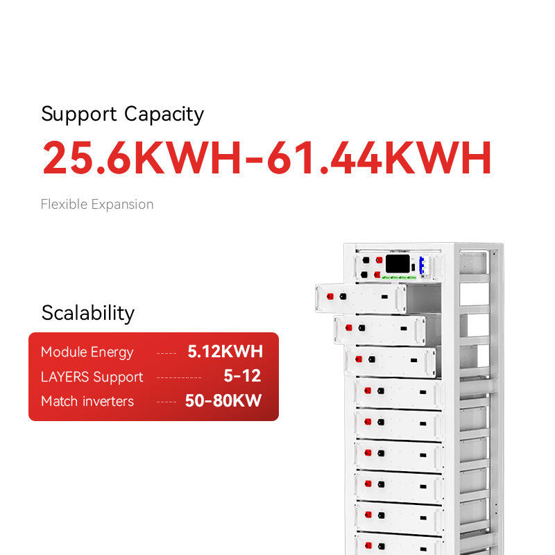 Sistema de Almacenamiento de Energía Solar con Batería LiFePO4 de 100Ah, Montaje en Rack, Estilo Gabinete Comercial e Industrial, Apilable, Híbrido, con Enfriamiento por Aire