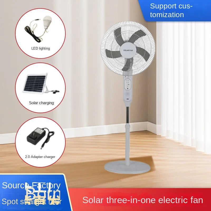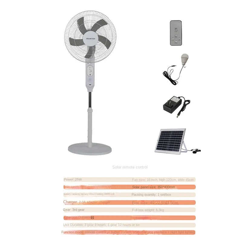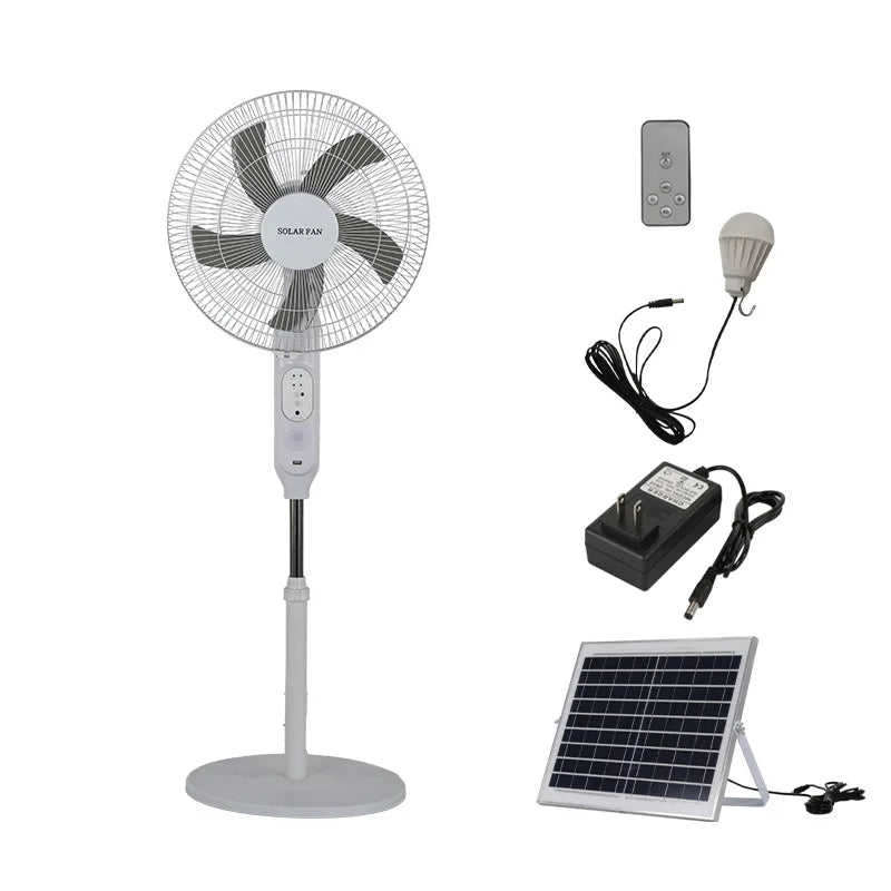 Ventilador Solar de 16 Pulgadas y 20W con Luz, Control Remoto y Carga por Panel Solar, Color Blanco