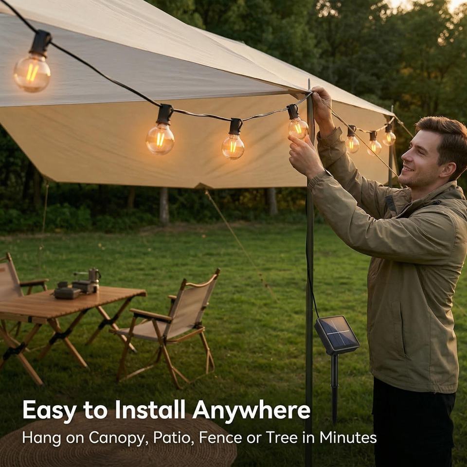 Guirnalda de Luces Solares G40 de 20 pies, Luces Decorativas LED Impermeables para Jardín Exterior, Luces de Navidad con 12+1 Bombillas, Gran Venta