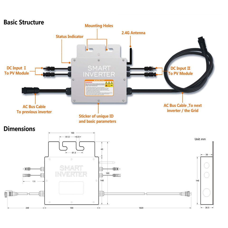 Micro inversor de voltaje de Red solar 600W 700W 800W convertidor fotovoltaico móvil WiFi DC 20-60V AC 120V 230V impermeable DC Connect