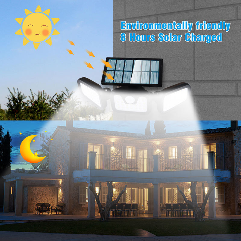 Lámpara Solar LED de Pared para Jardín con Sensor de Movimiento y Luz, IP65 Impermeable, Recargable, Ángulo Ajustable, Iluminación de Alto Brillo