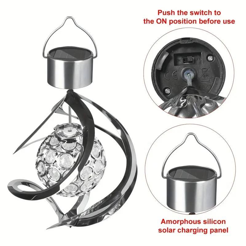 Campanas de viento huecas LED solares con bola de color, decoración de jardín que cambia de color energéticamente eficiente, luz exterior con control táctil