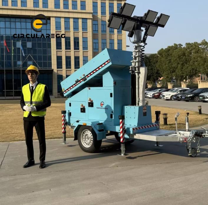 Torre de Iluminación Solar con Clasificación IP65, Panel Solar de 4*435W, 144000 Lúmenes, Luces LED, Remolque de Iluminación Móvil para Áreas Remotas