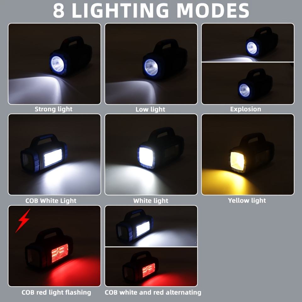 Linterna LED Solar Multifuncional con Foco de 3W, Luz de Emergencia COB y 90 SMD, Multimodo, USB