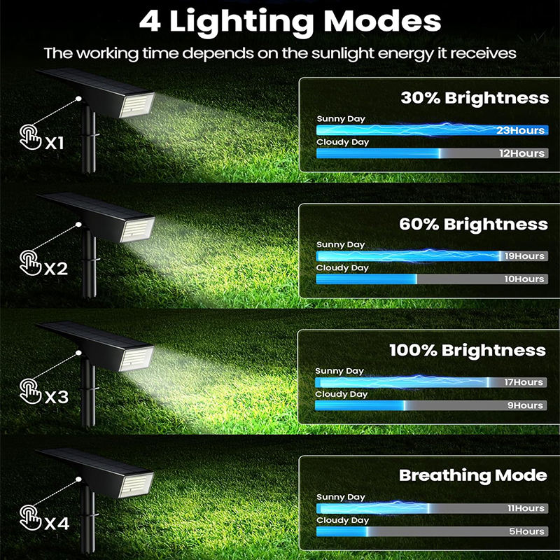 Focos Solares para Exteriores, 100 LED, IP65 Impermeables, 4 Modos de Luz, Encendido/Apagado Automático, para Jardín, Patio, Camino, Iluminación de Paisajes