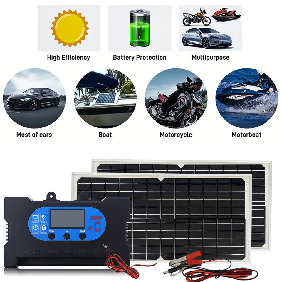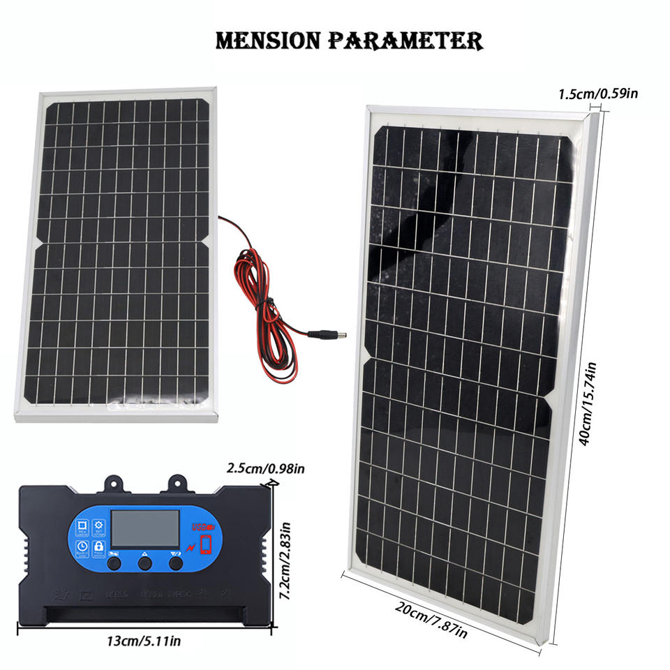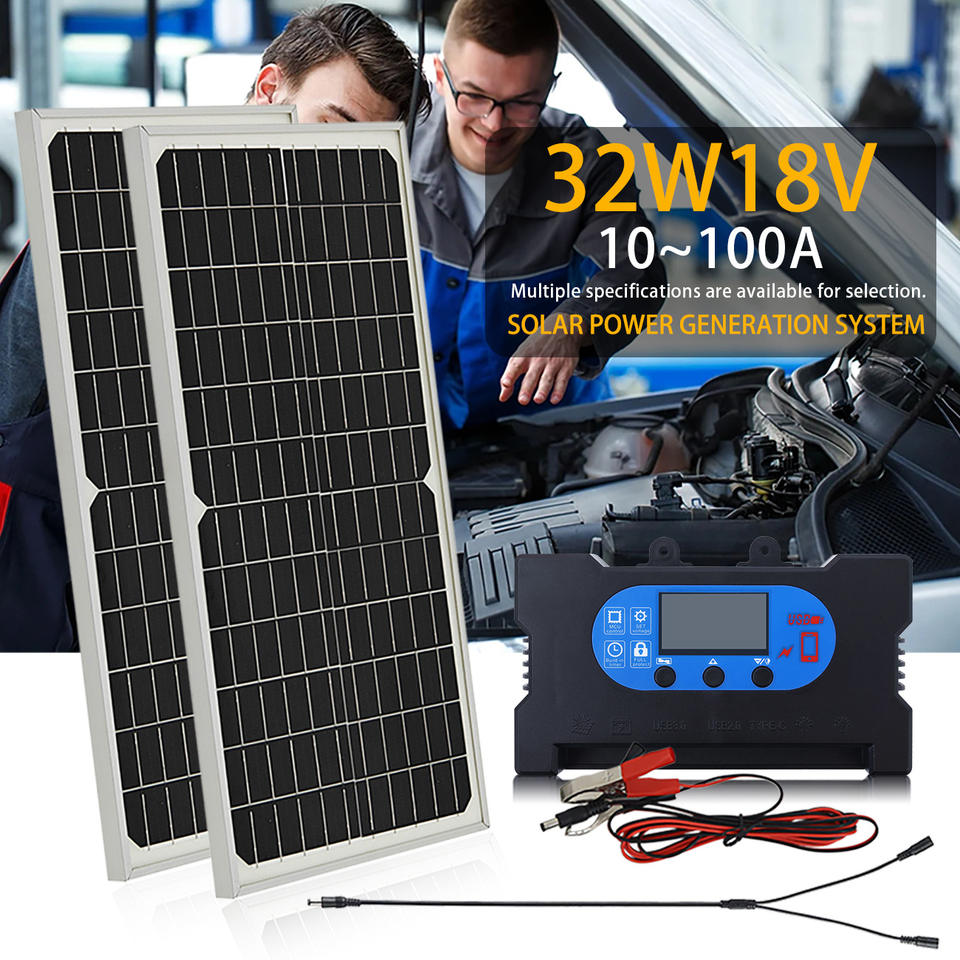 Kit de Panel Solar Monocristalino de 16W 32W para Carga de Batería de Coche con Controlador y Cables