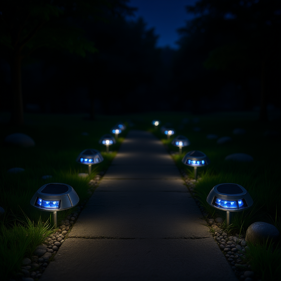 Luces Solares para Camino, Paquete de 24, LED Azul, Impermeables, para Jardín, Camino de Entrada, Terraza, Iluminación Exterior, IP65, Aleación de Aluminio