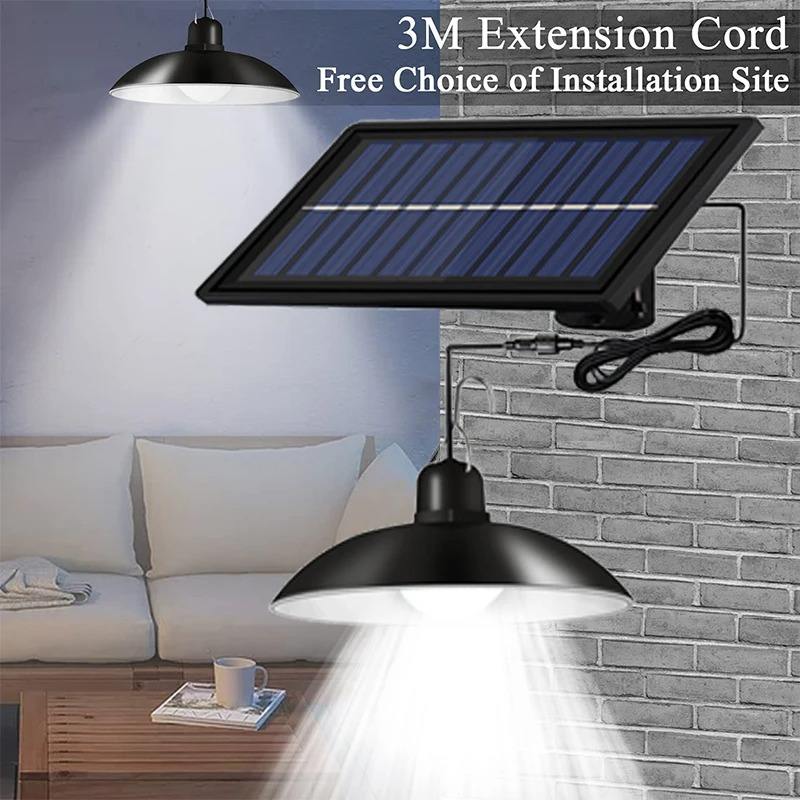 Lámpara Colgante Solar para Exteriores, Impermeable, LED, Doble Cabezal, Decorativa, con Control Remoto, para Interiores, Cobertizos, Graneros y Habitaciones