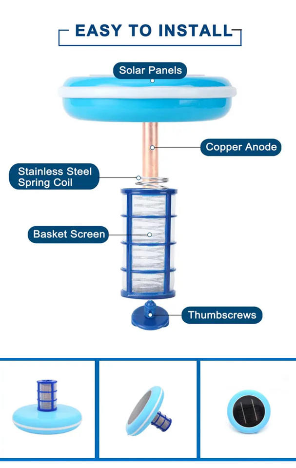 Ionizador Solar para Piscinas, Ionizador de Cobre y Plata, Tratamiento de Agua para Piscinas, Ecológico, Sin Químicos, para Piscinas Elevadas, Certificado CE