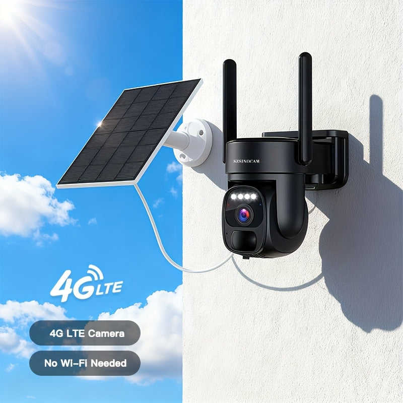Cámara de Seguridad Solar de 360° con Detección de Movimiento PIR, Visión Nocturna, Tarjeta SIM para 2G/3G/4G LTE, Incluye Red WiFi