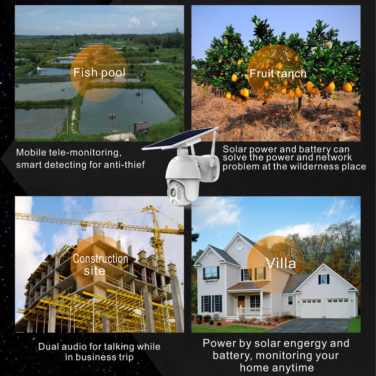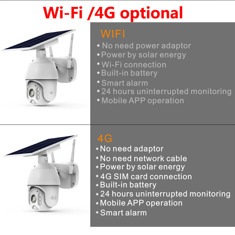 Cámara CCTV Sim 4G con energía solar Cámara de seguridad de red IP inalámbrica con visión nocturna y conectividad Wifi de Audio bidireccional