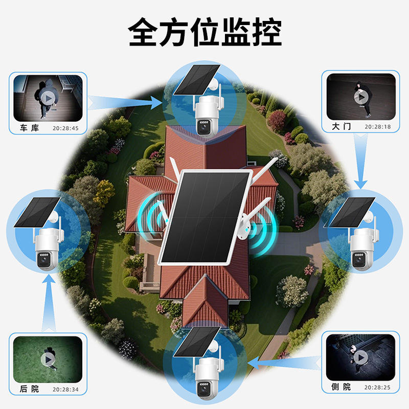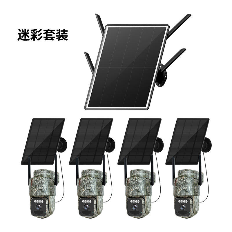 Kit de cámara WiFi 4G con energía solar, camuflaje, vigilancia inalámbrica de alta definición para exteriores con almacenamiento en la nube e intercomunicador