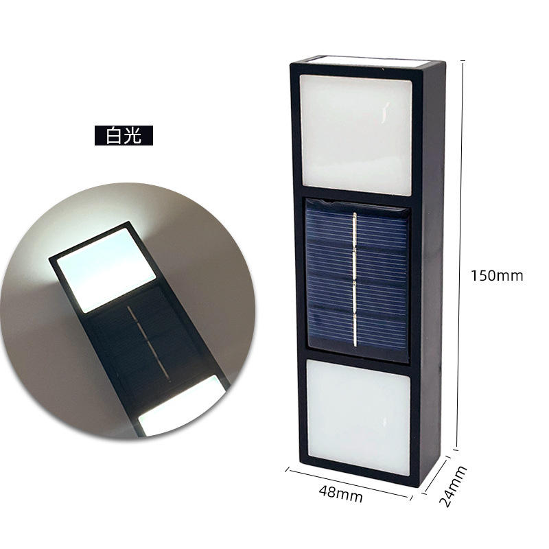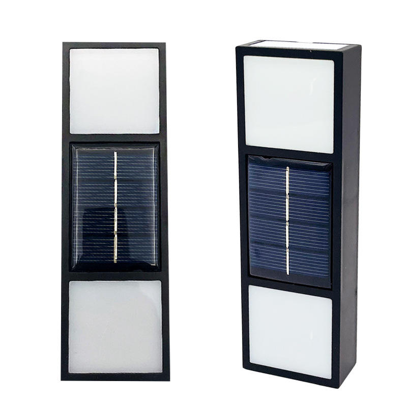 Lámpara de pared con energía solar de 6 LED, emisión superior e inferior, iluminación decorativa para patio exterior, material plástico
