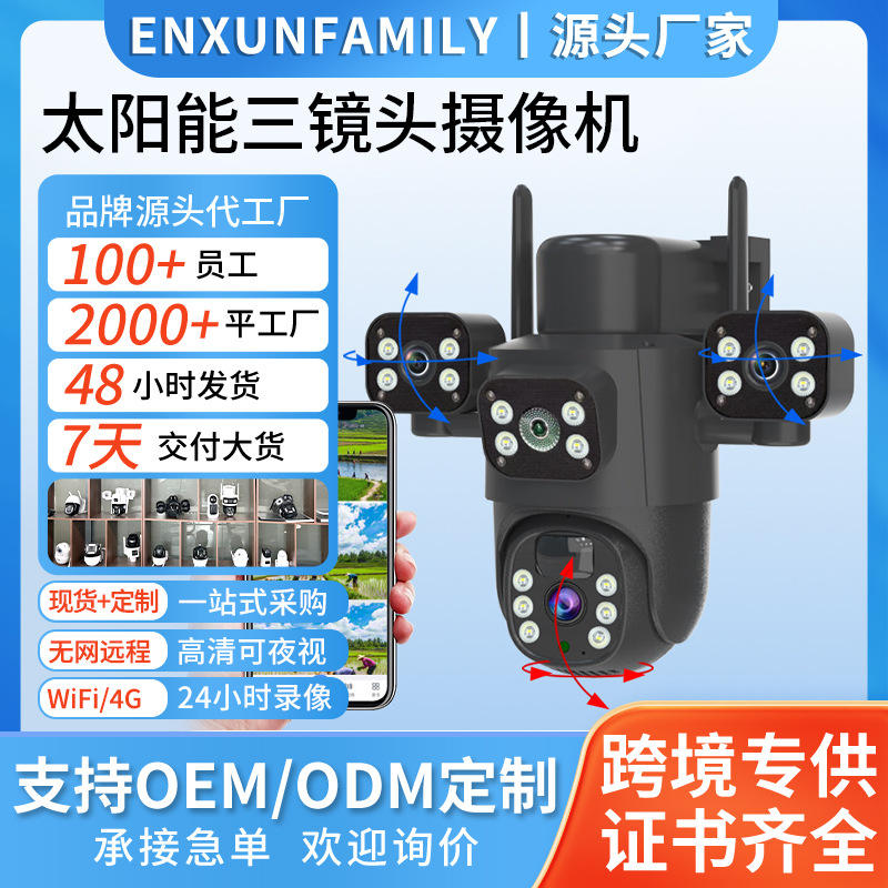 Cámara Solar de 6MP 1920x3240 con Triple Lente para Seguridad en Exteriores y Hogar, con Visión Nocturna y Almacenamiento en la Nube