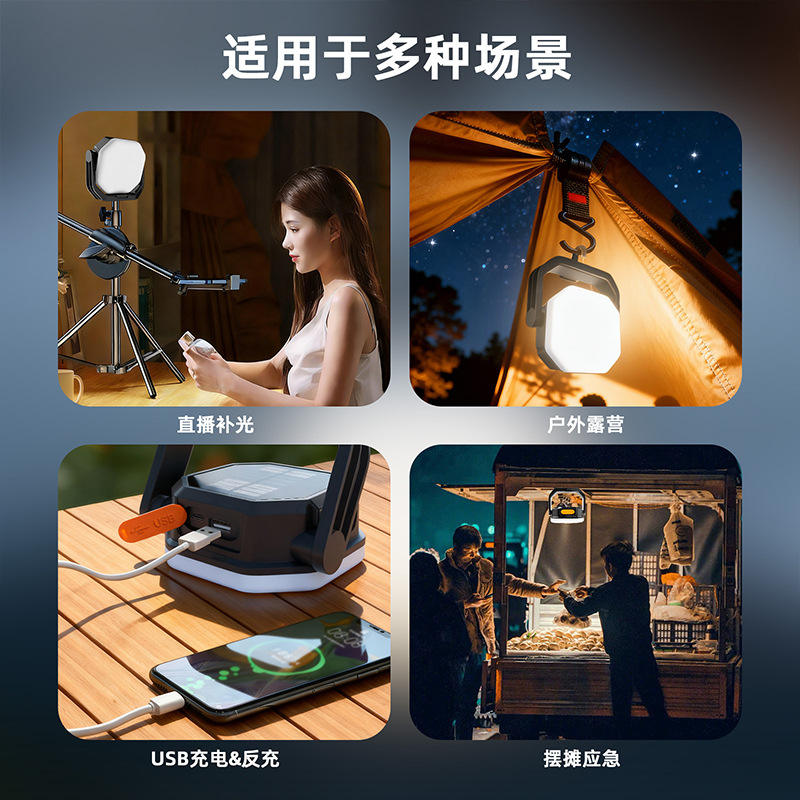 Lámpara de Camping Solar LED Impermeable con Gancho Magnético, Iluminación Portátil de Emergencia para Tiendas de Campaña y Puestos de Venta Ambulantes