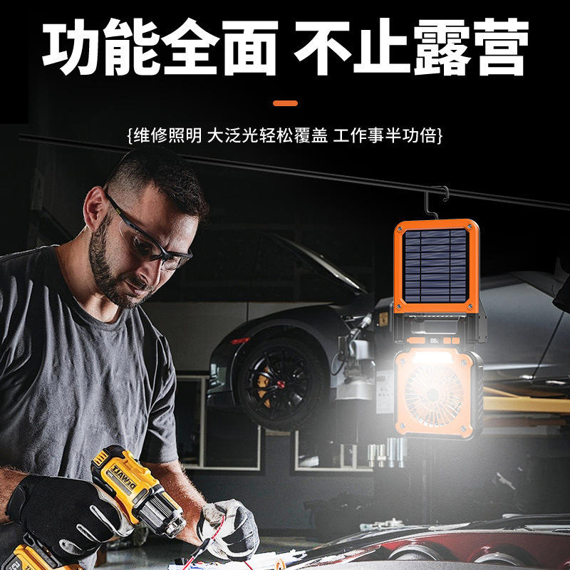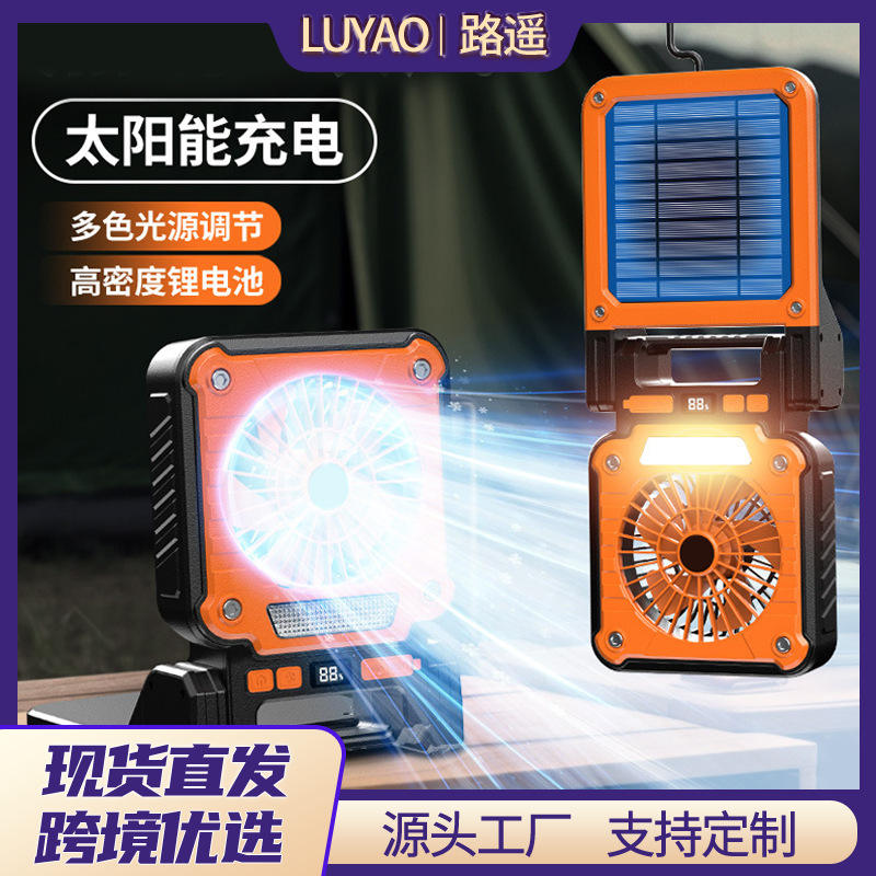 Ventilador con Luz Solar de 15W, Recargable por USB, Portátil, para Exteriores y Camping, con Luz LED para Uso en Tiendas de Campaña