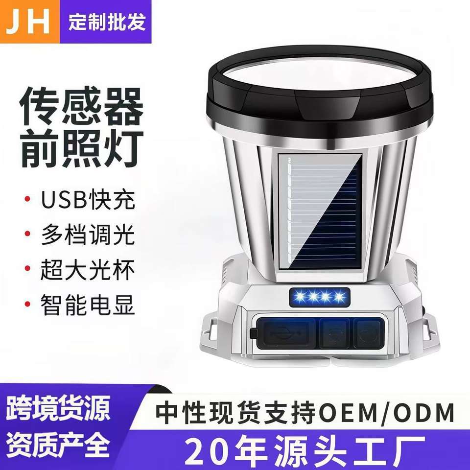 Solar Powered Headlamp 300-499M LED High Brightness Rechargeable For Night Fishing Mining With 90 Degree Adjustable Light
