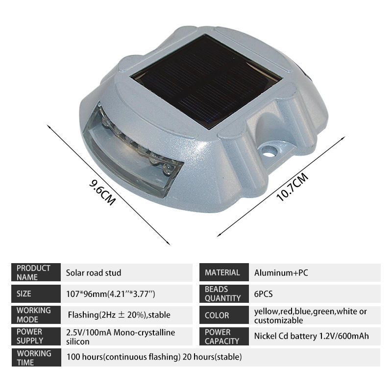 Luz de Advertencia Intermitente LED con Forma de Herradura, Alimentada por Energía Solar | Tachuela de Aluminio para Carretera de 106*95 mm