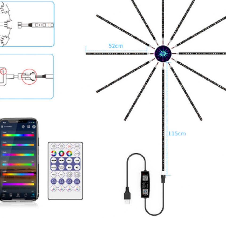 Luces Solares LED de Fuegos Artificiales, Luces de Hadas RGB con Control Remoto, Decoración para Exteriores, Caminos, Patios, Jardines, Navidad