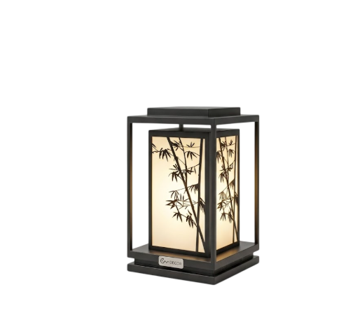 Luces Decorativas de Jardín LED Solares con Patrón de Bambú, Clasificación IP66, Construcción Metálica, Luz Blanca Cálida Suave de 2700K