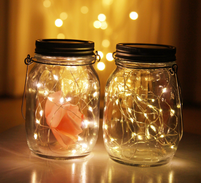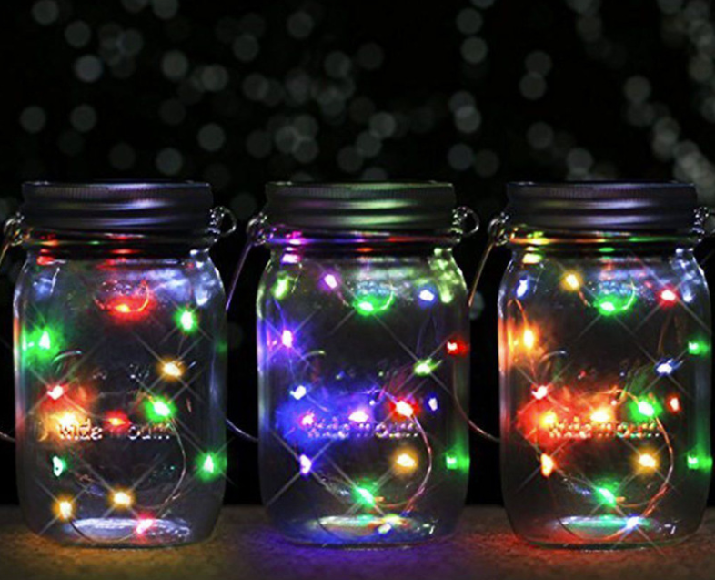 Lámpara Solar LED para Frascos de Vidrio, con Cable de Cobre Plateado, Estilo Luciérnaga, para Patio, Jardín, Luces Solares Colgantes para Exteriores