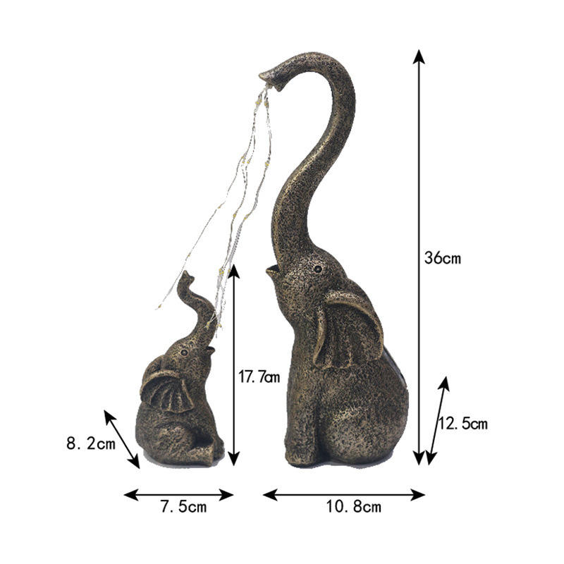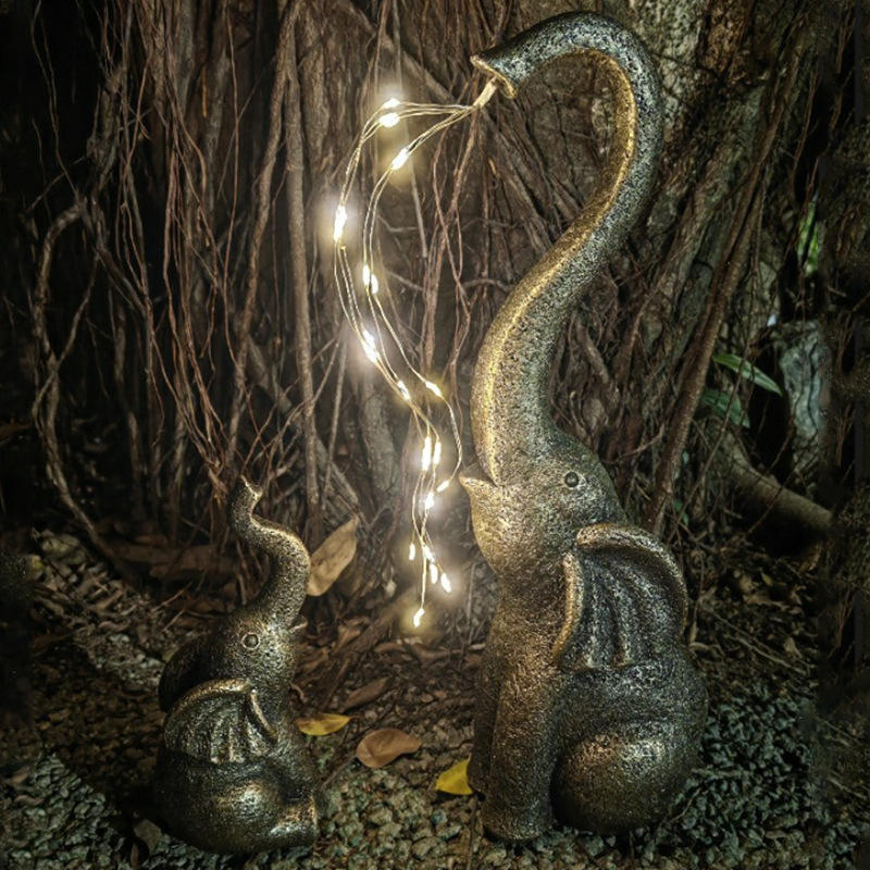 Colgante de elefante madre e hijo con energía solar, adorno para jardín al aire libre, luz decorativa impermeable, acabado natural