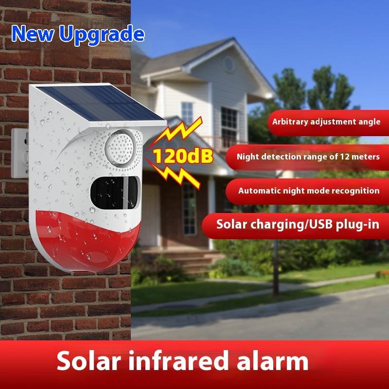 Alarma de Sensor de movimiento PIR con energía Solar con fuerte Flash 120dB sirena estroboscópica para el hogar jardín cobertizo caravana sistema de alarma de seguridad