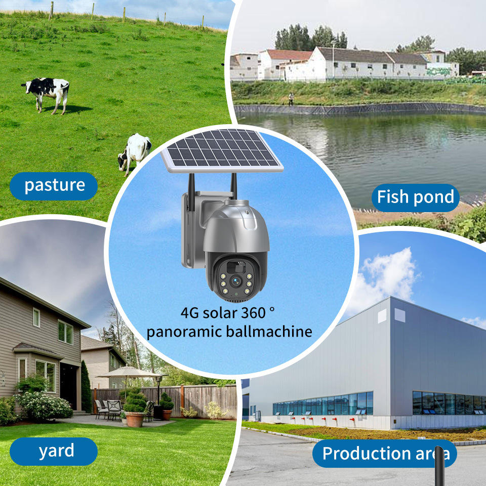 Cámara de Vigilancia Solar 4G Panorámica de 360 Grados, Impermeable para Exteriores, con Visión Nocturna, para Pastos, Estanques de Peces y Producción Agrícola