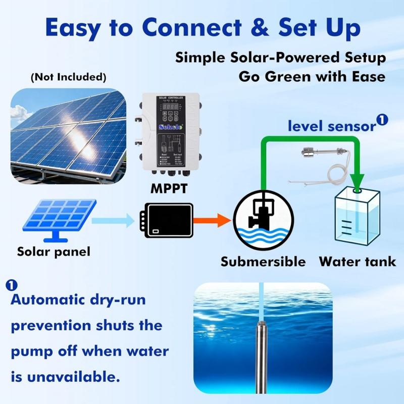 Kit de Bomba Solar Completo con Paneles, Bomba Solar de 80m de Altura para Pozos Profundos, Sistema de Bomba de Agua Solar Sumergible de Corriente Continua para Riego