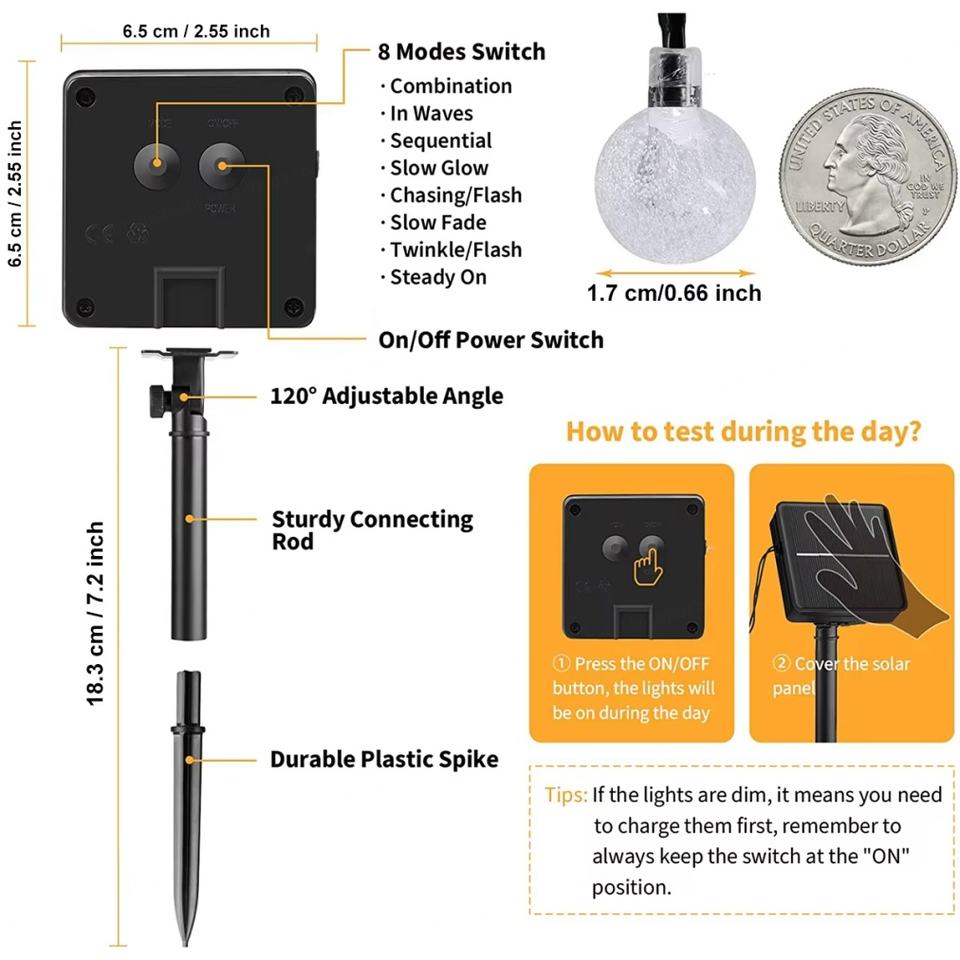 Guirnalda de Luces Solares, 8 Modos, Luces Impermeables para Exteriores, Patio, Árbol, Navidad
