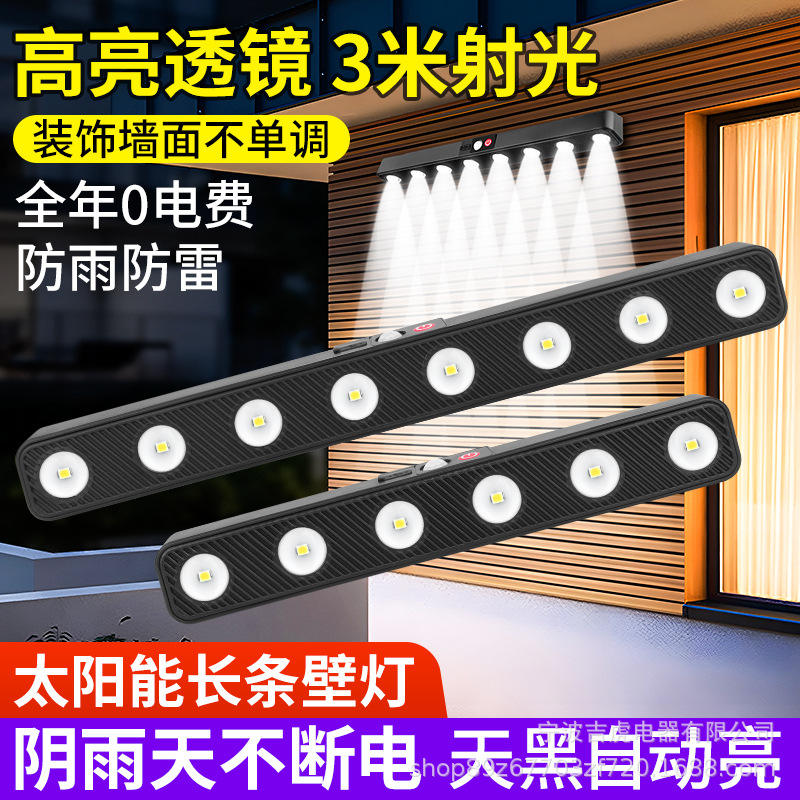 Solar Strip Wall Lamp Long LED White Light 20 Degree Beam Angle Outdoor Garden Courtyard Lighting