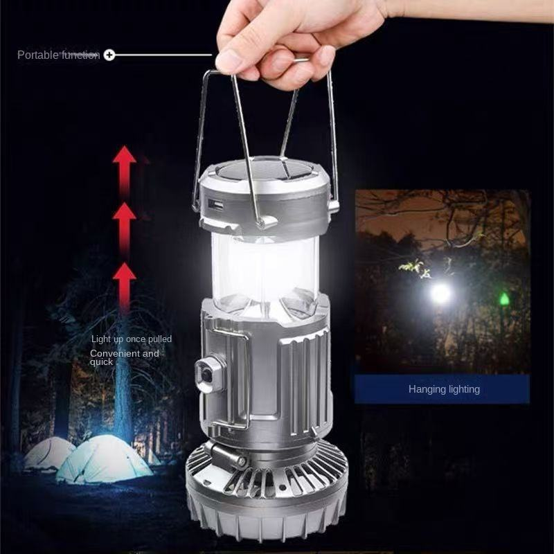 Linterna de Camping Recargable Solar y USB con Ventilador, Lámpara LED Portátil para Tienda de Campaña, Luz de Emergencia Multifuncional para Acampar al Aire Libre
