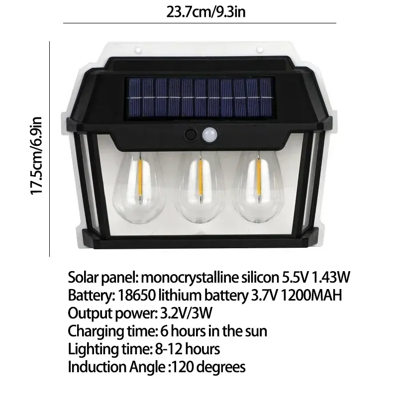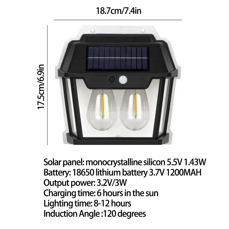 Lámpara Solar de Pared con Sensor de Movimiento, Luz de Pared de Tungsteno con Control Remoto, Iluminación Solar para Jardín y Patio