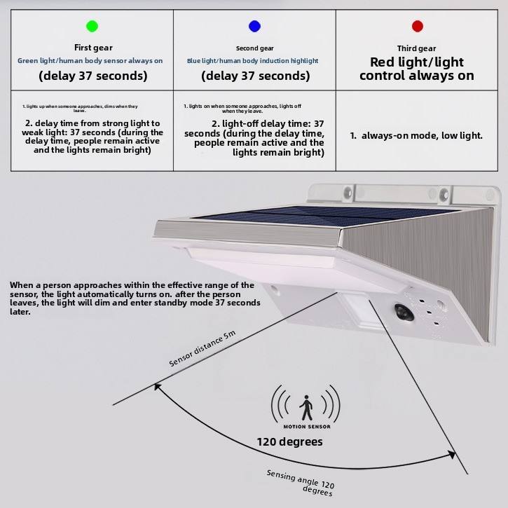 Palabra clave:Lámpara solar de pared LED para exteriores con sensor de movimiento humano