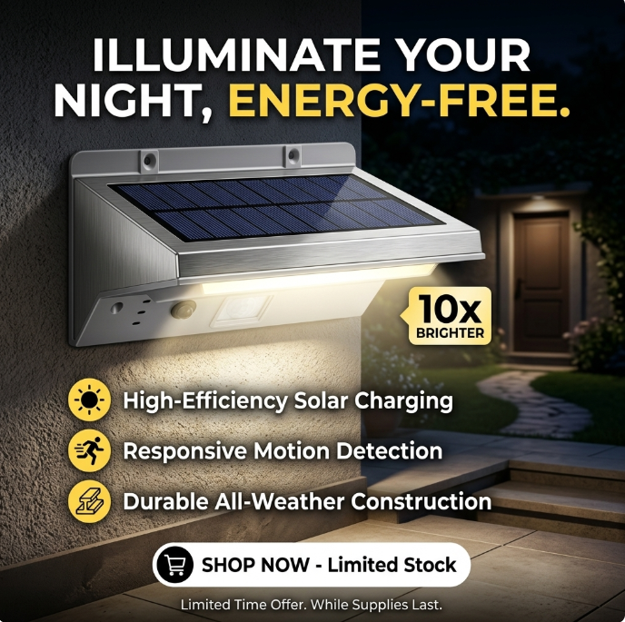 Lámpara solar de pared para exteriores con sensor de movimiento inteligente.