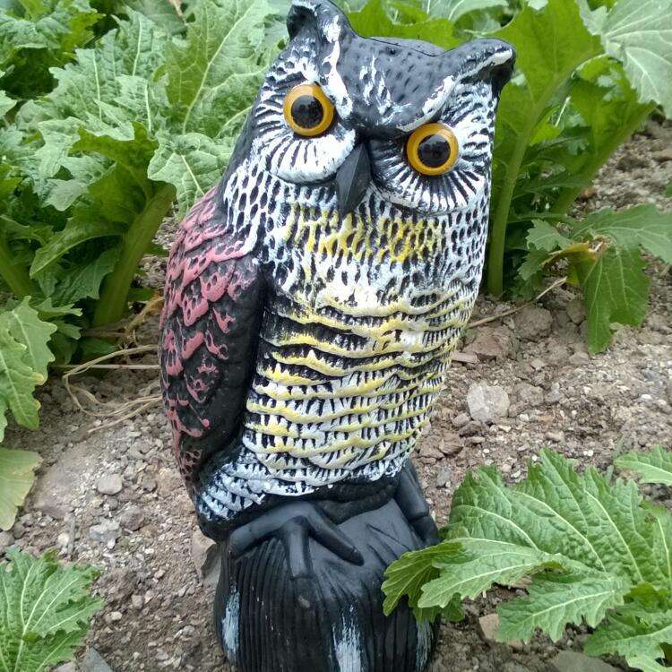 Ahuyentador de Aves para Huertos y Señuelo de Caza con Energía Solar, Sensor de Movimiento, Impermeable, Sonoro y con Ojos Luminosos, Modelo Búho