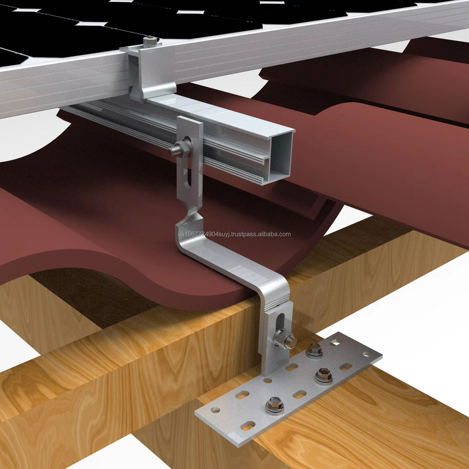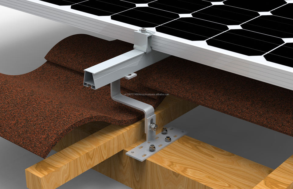 Aluminio 6005-T5 Material Rieles de montaje en techo solar Sistema de montaje en techo de teja con abrazaderas PV