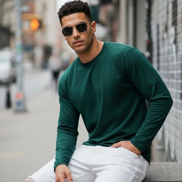Camiseta de Lana Merino con Cuello Redondo, Informal, Personalizada, de Otoño y Primavera, de la Fábrica Solarwool, para Hombre