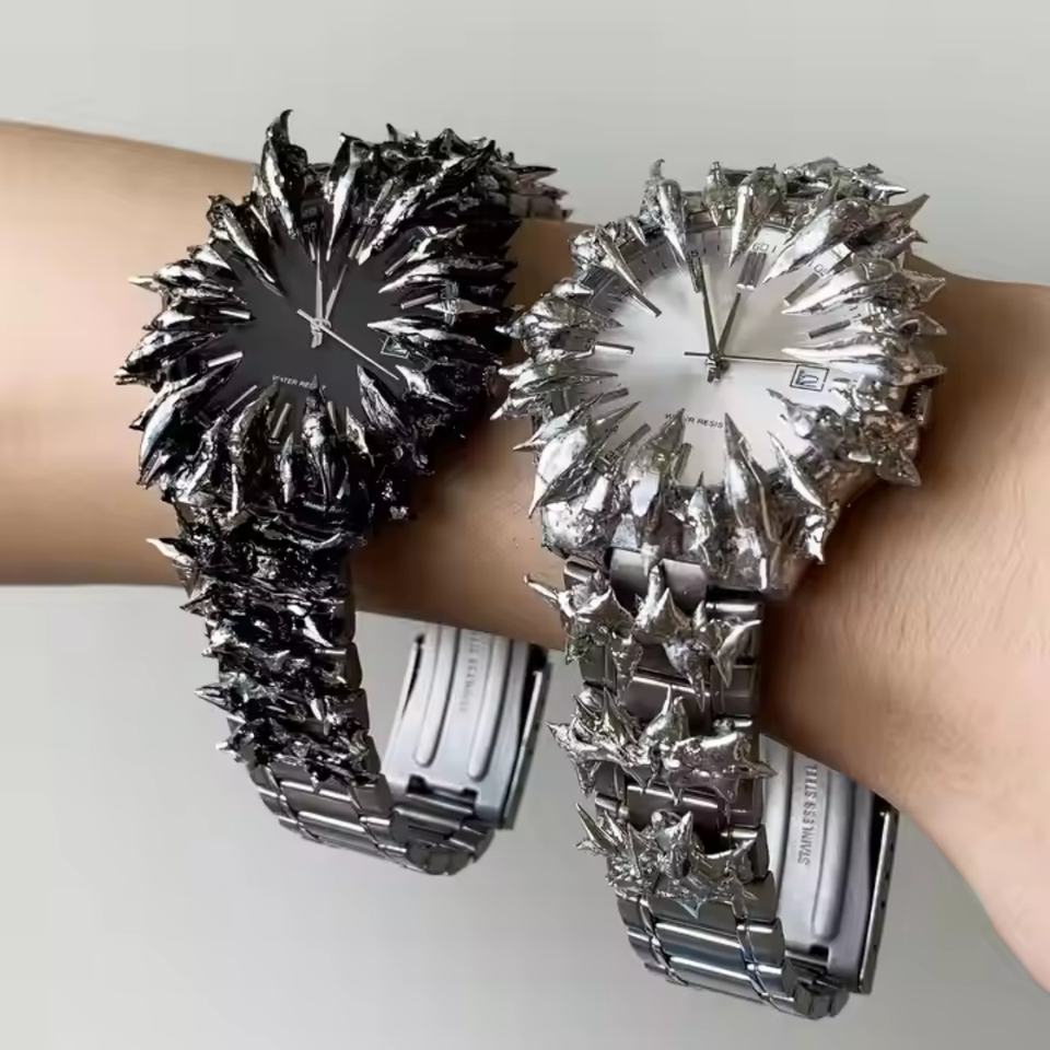 Reloj de Acero Inoxidable con Diseño Gótico Soldado, Cristal de Zafiro, Alabastro, Cuarzo Japonés, Estilo Y2K con Púas