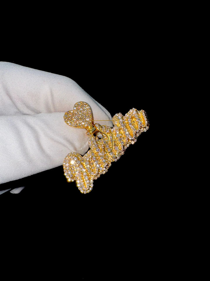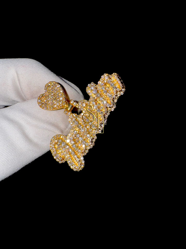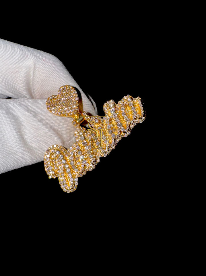 Collar con Colgante Personalizado en Letra Cursiva de Oro Sólido de 10K, con Dije de Corazón y Letra Personalizada, con Diamante Natural, Regalo Moderno