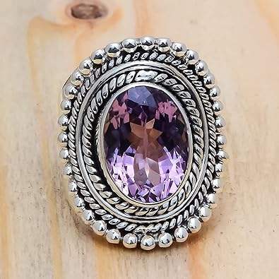Anillo de Plata de Ley 925 con Amatista Engastada en Bisel, Hecho a Mano, Moderno, Chapado en Rodio, para Bodas o Fiestas