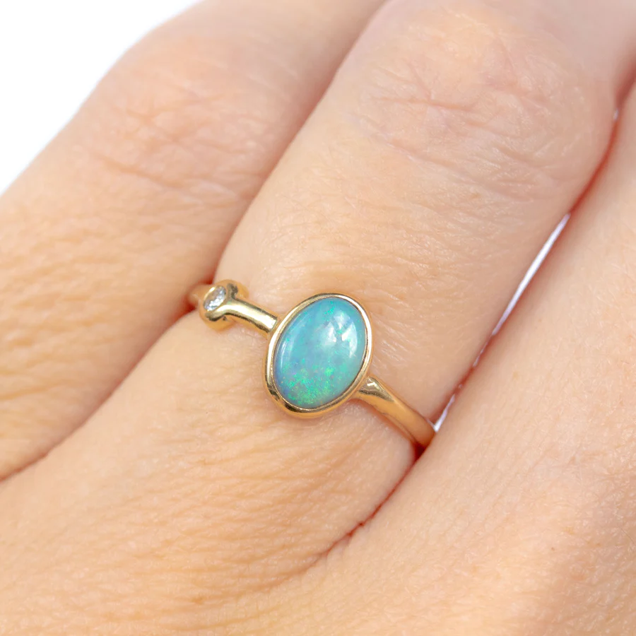 Anillo de Compromiso o Matrimonio de Plata de Ley 925 con Ópalo de Fuego Azul Ovalado Minimalista con Engaste de Bisel y Baño de Oro para Fiesta