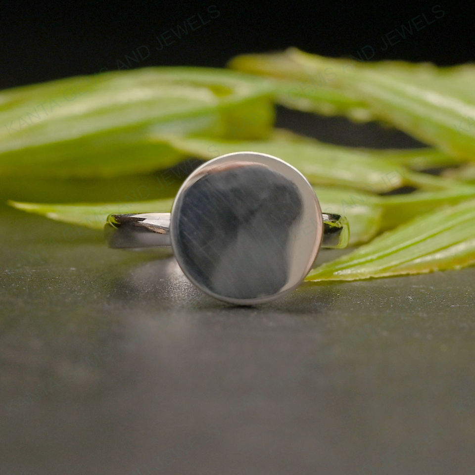 Anillo superior plano de 15mm de forma redonda minimalista de Plata de Ley 925 sólida bueno para grabar nombre y logotipo joyería de recuerdo personalizada