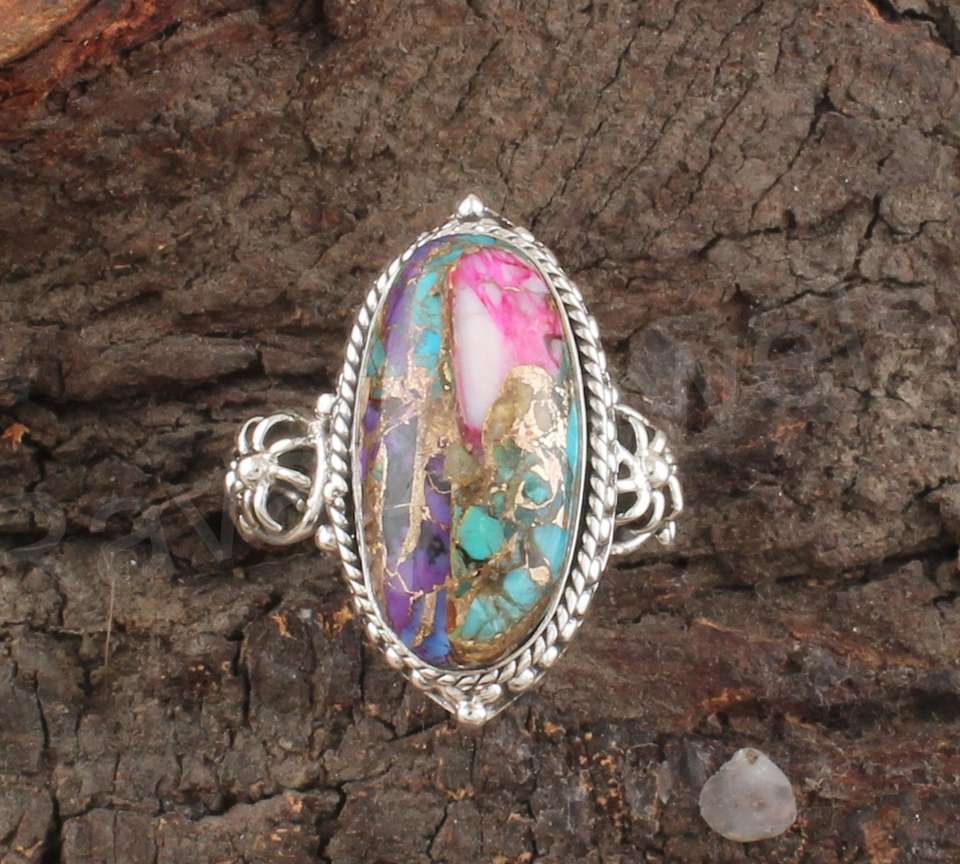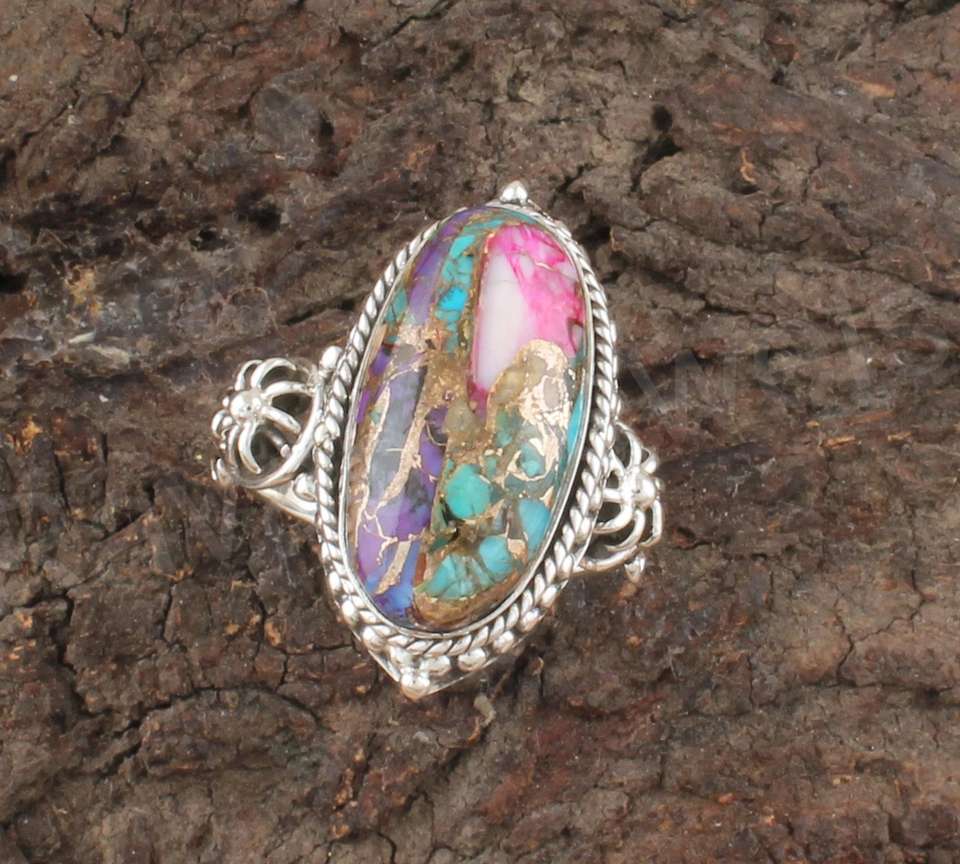 925 plata esterlina piedras preciosas multi cobre turquesa anillo
