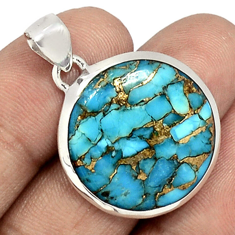 Palabra clave:Cobre turquesa piedra preciosa colgante de plata sólida joyería hecha a mano