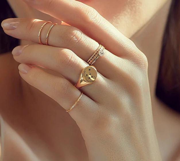 Plata de Ley 925 sólida, diseño único, anillo relleno de oro, banda de estrella, joyería de moda, regalos de cumpleaños de aniversario para mujeres y niñas