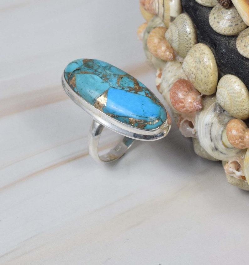 Sólido 925 anillo de turquesa esterlina joyería hecha a mano boda anillo de plata sólida turquesa anillo de piedras preciosas