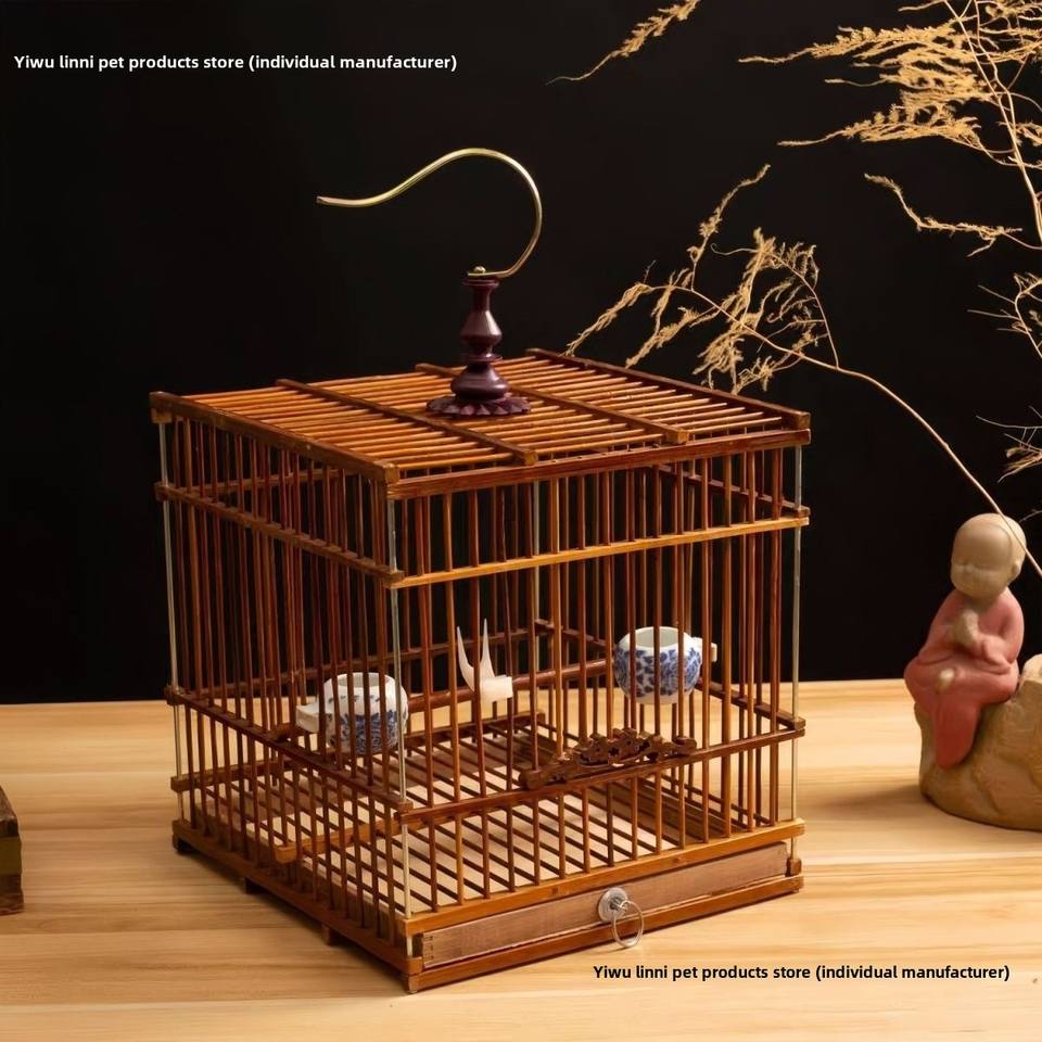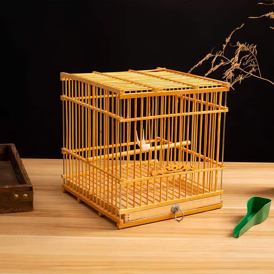 Jaulas de pájaros rectangulares cuadradas pequeñas de bambú sólido, Colección completa para periquitos, pinzones, jilgueros, envío prioritario de Metal